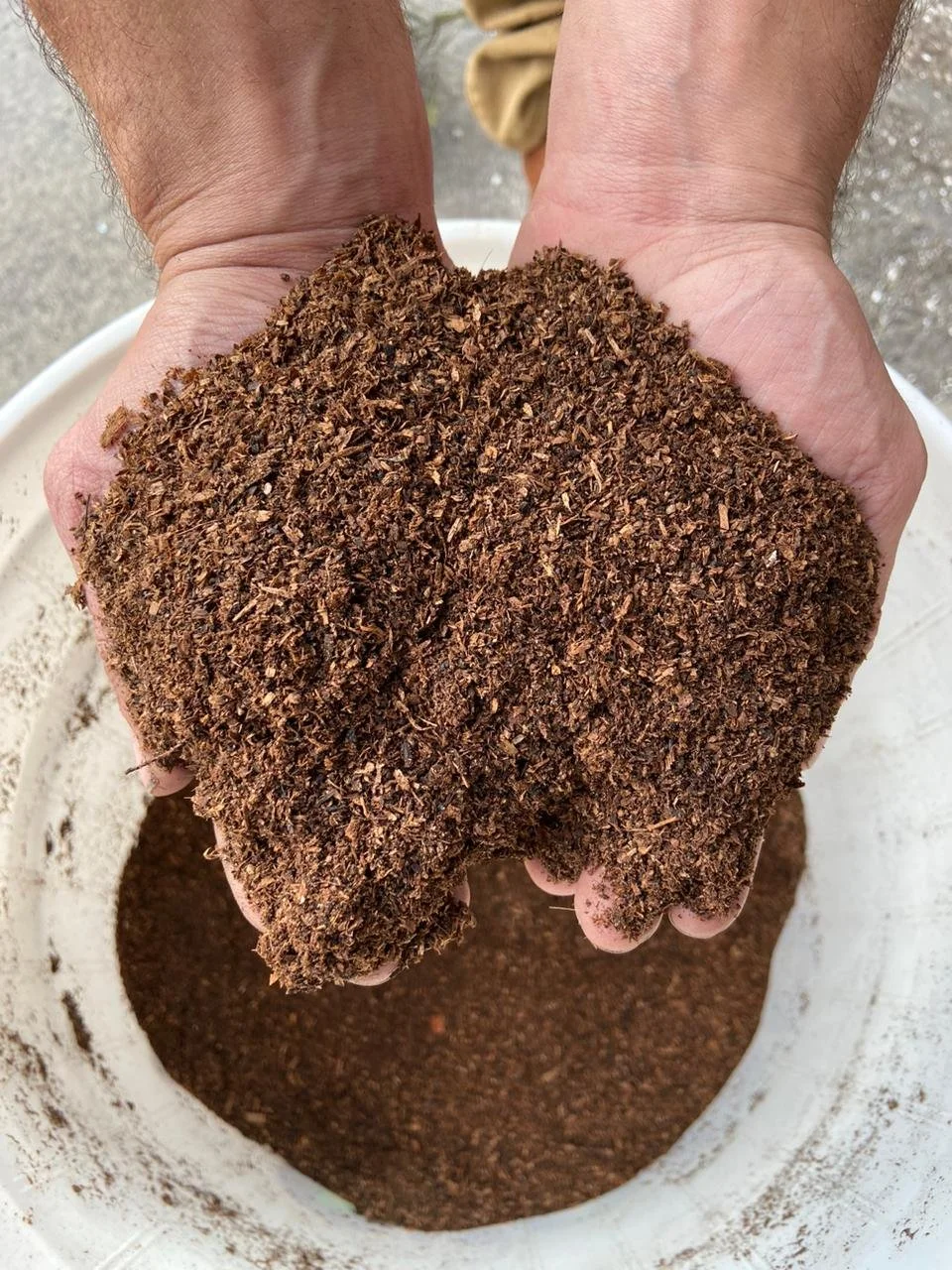 Cobertor de suelo biologicamente activo y con nutrientes disponibles para las plantas. Hecha a base de residuos organicos desviados del vertedero municipal.